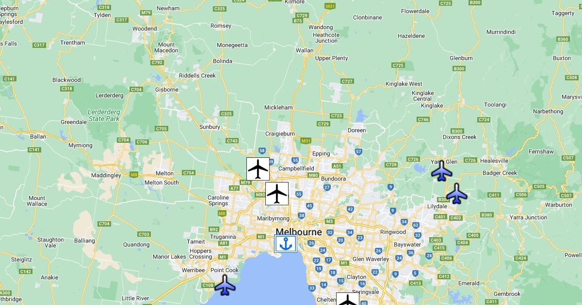 1 порт та 7 аеропортів м. Мельбурна, Австралія.