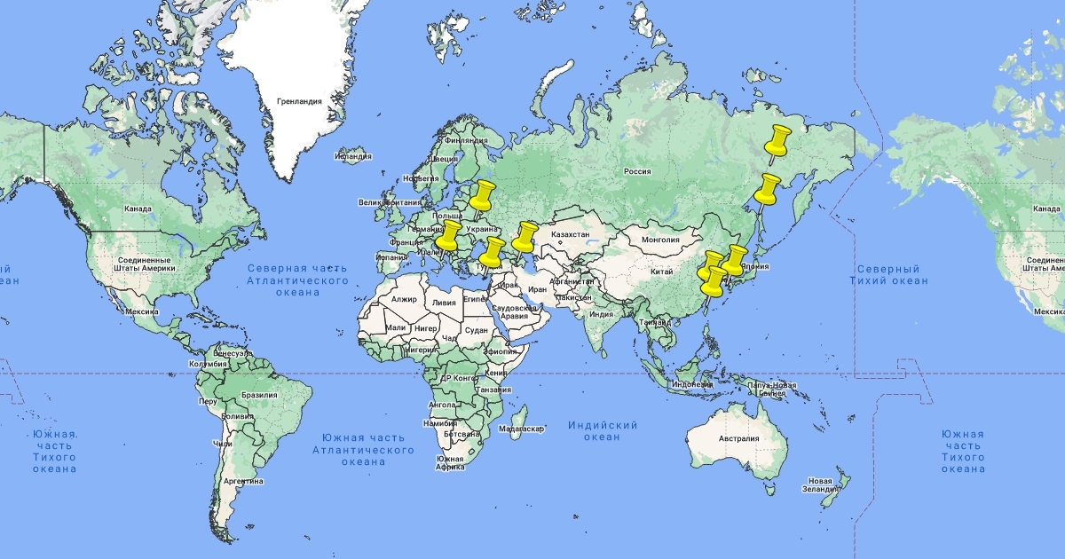 На карте отображены мертвые города мира с их описанием