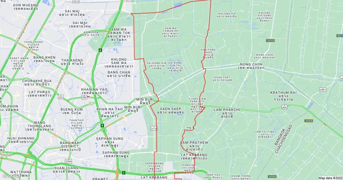 สภาพฟลัดเวย์ตะวันออก กทม. ณ 15 พ.ย. 2554 - บริเวณ "ที่ดินประเภทอนุรักษ์ชนบทและเกษตรกรรม" ในผังเมือง กทม. ถูกกระชับพื้นที่ด้วยหมู่บ้านจัดสรรกว่า 40 แห่ง