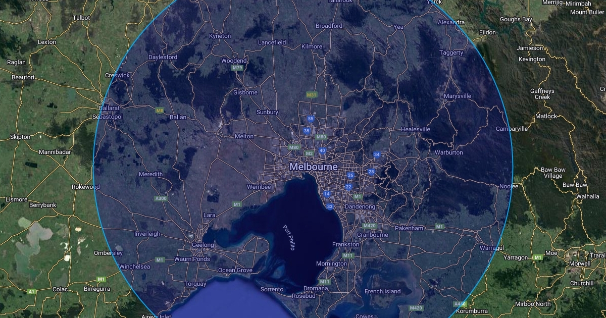 100 km Radius