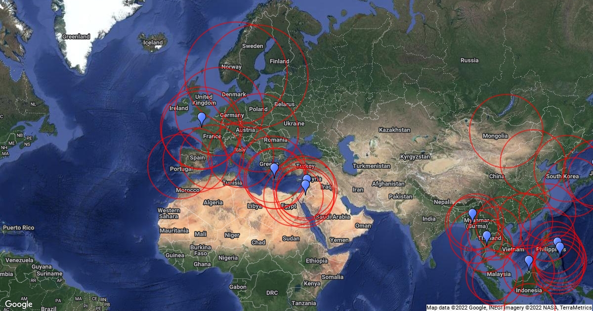 1000 km radius