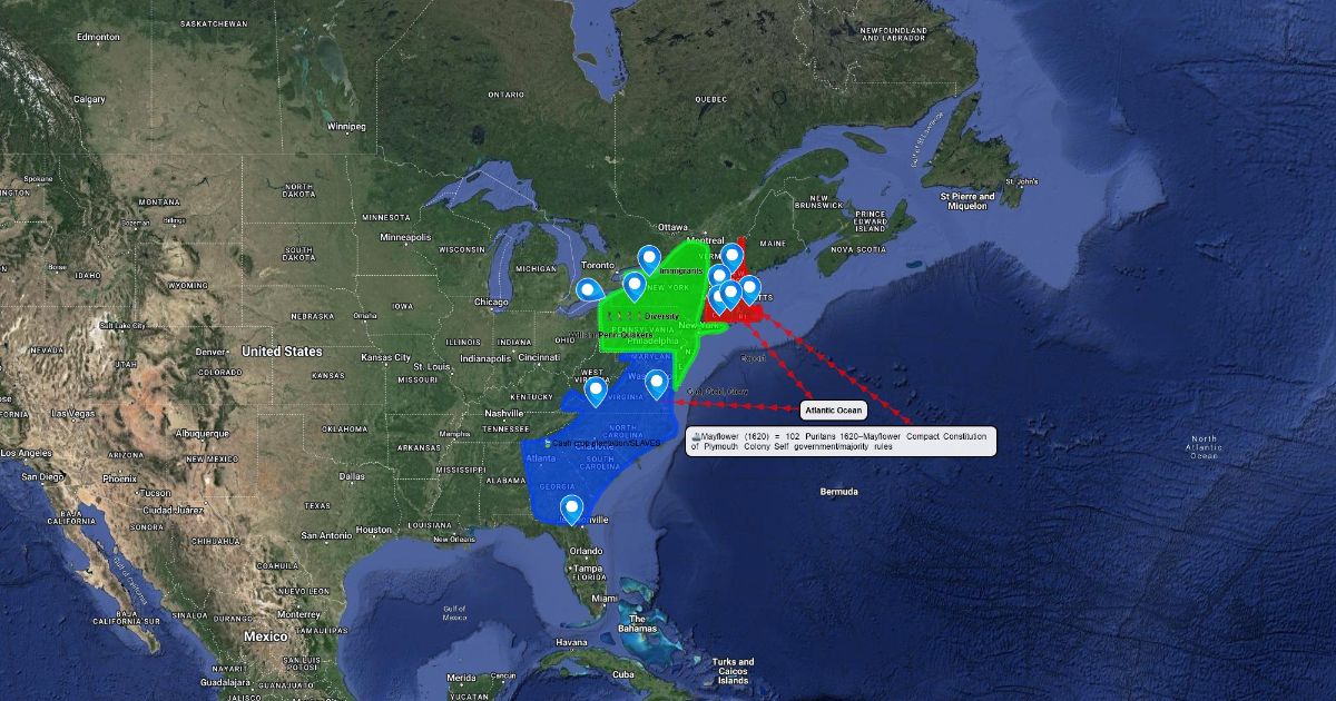 13 colonies map