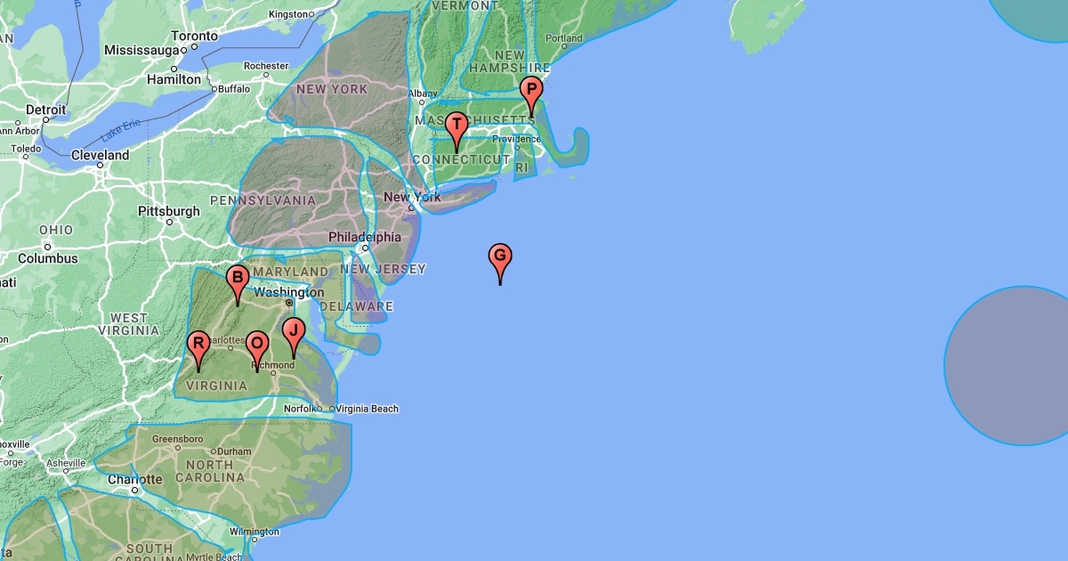 13 colonies map