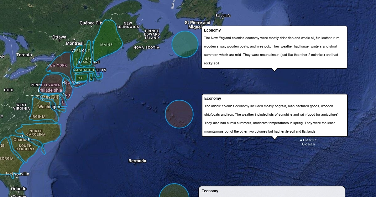 13 colonies map