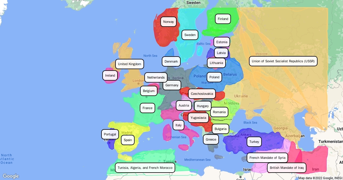 1919 European Political Boundaries After the Treaty of Versailles