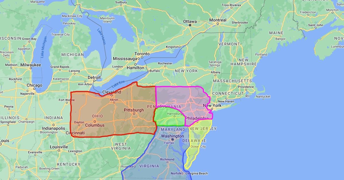 Map of all direct sales territories effective June 2018