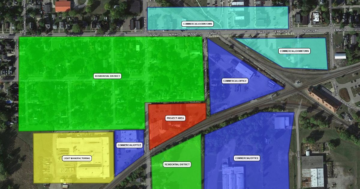 Area uses surrounding 209 S Oak Street.