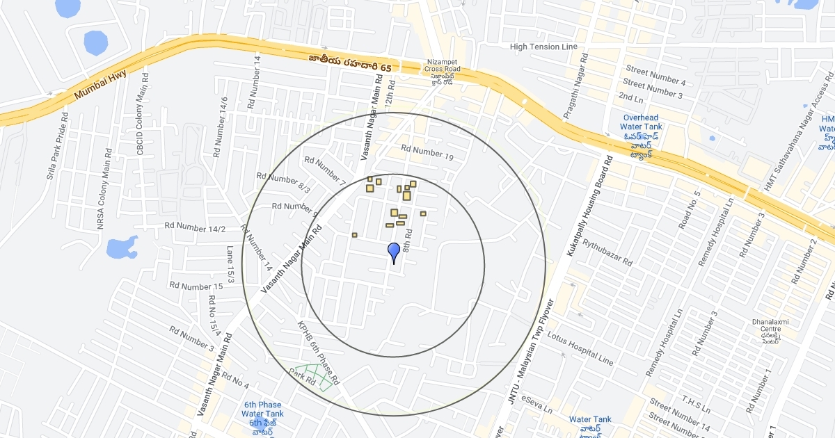 300 and 500 m radius