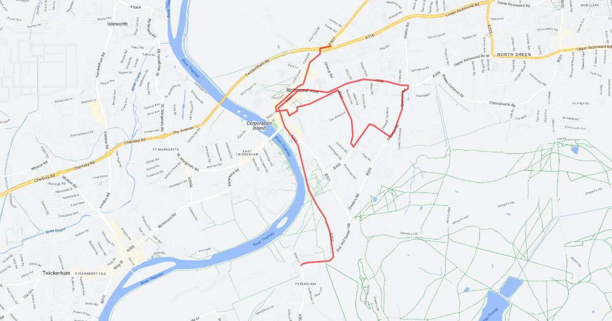 Towards Richmond Diversion along Psham Road, Richmond, Sheen road to LOR