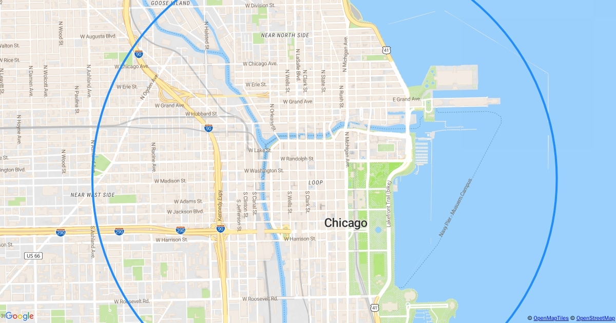 2, 5, 10, 30, 40 mile radius from State and Madison