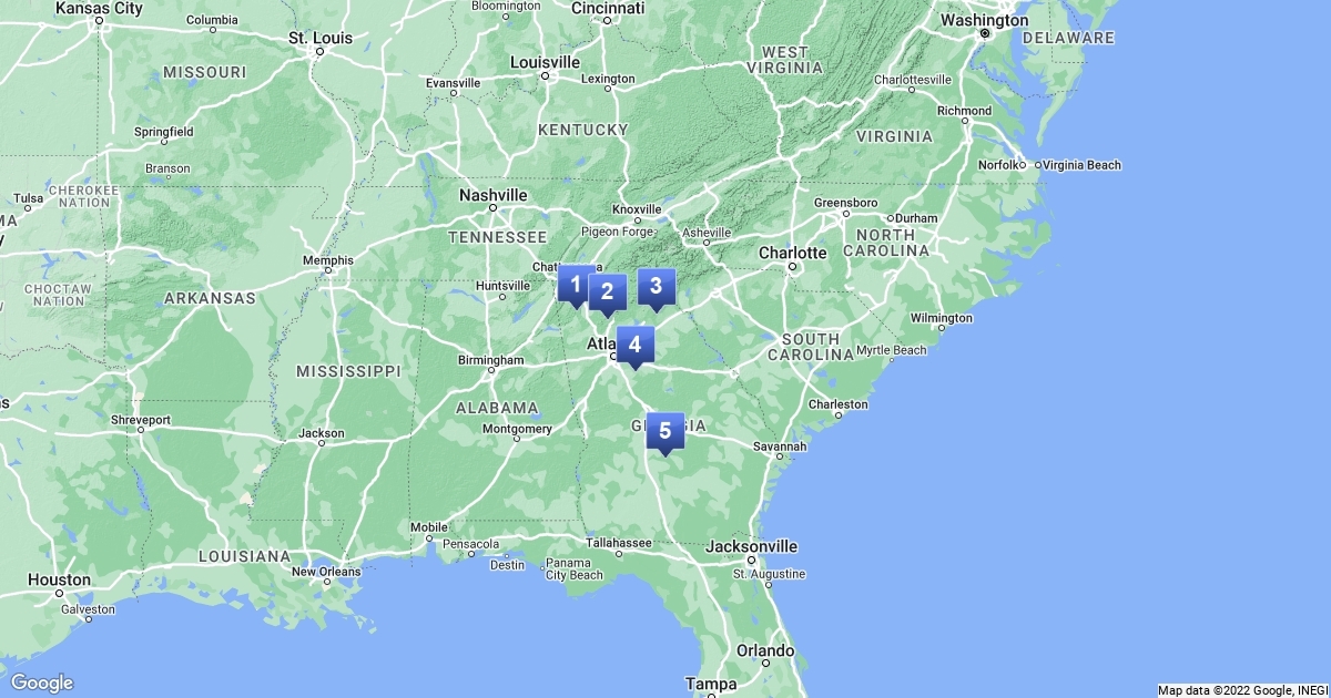 Map of 5 Georgia regions