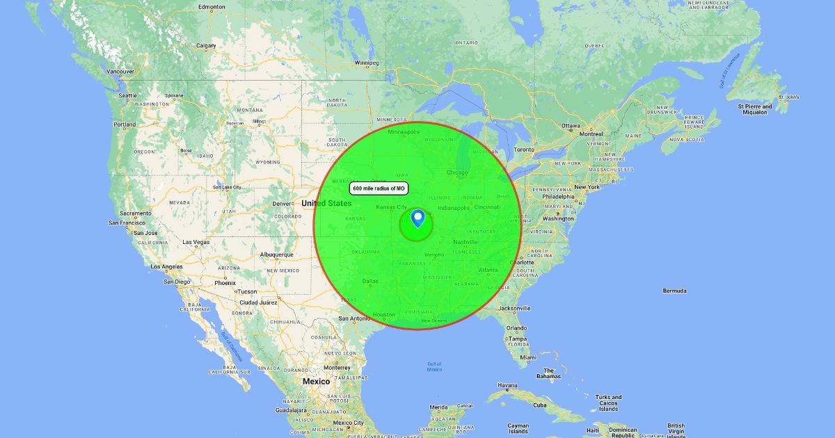 600 MILE RADIUS OF MO
