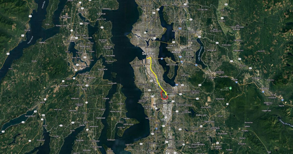 Downtown Seattle to 601 Monster Road - i5 to i405
