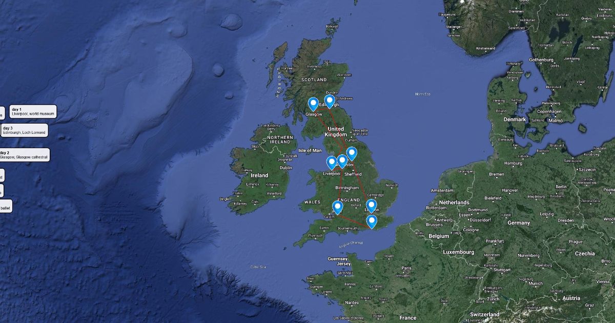 map of my 8 day tour