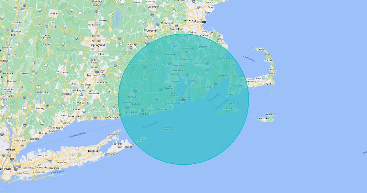 80 km radius around Newport