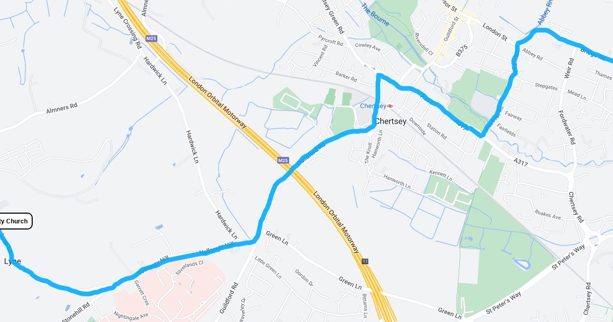 Route from Holy Trinity Church, Lyne to Bridge Hotel, Chertsey