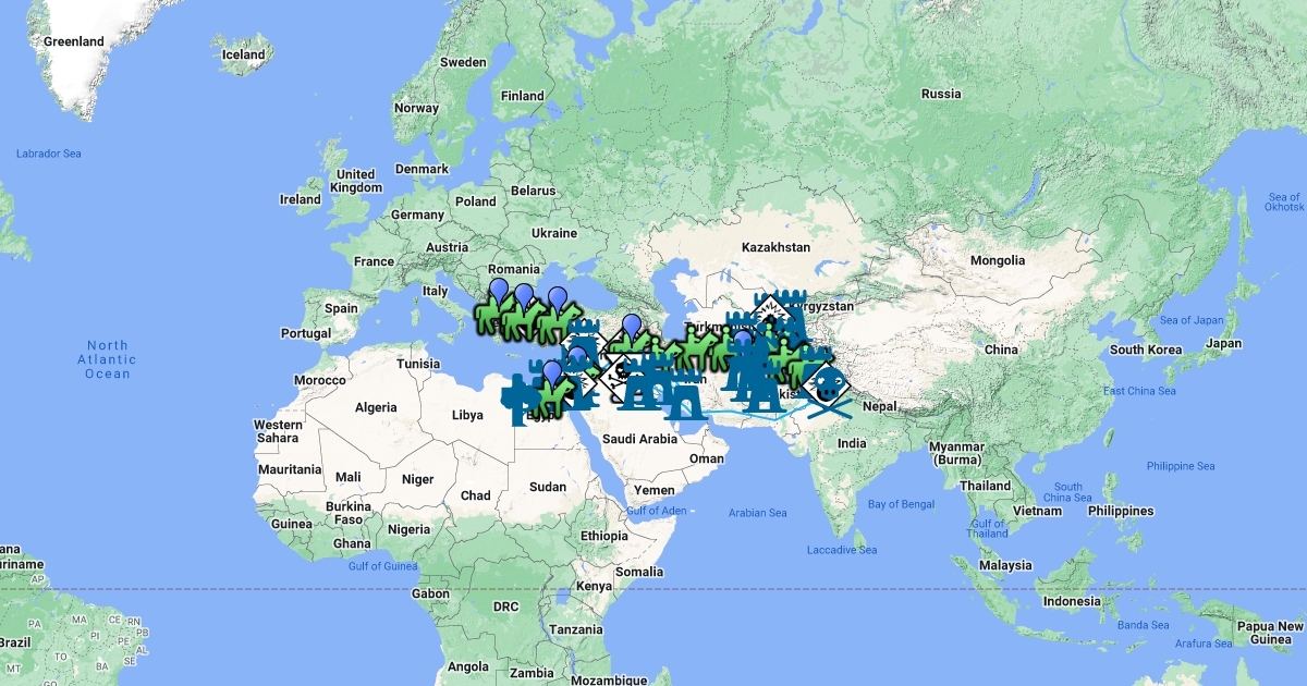 Mappa delle conquiste e degli spostamenti di Alessandro Magno e il suo esercito