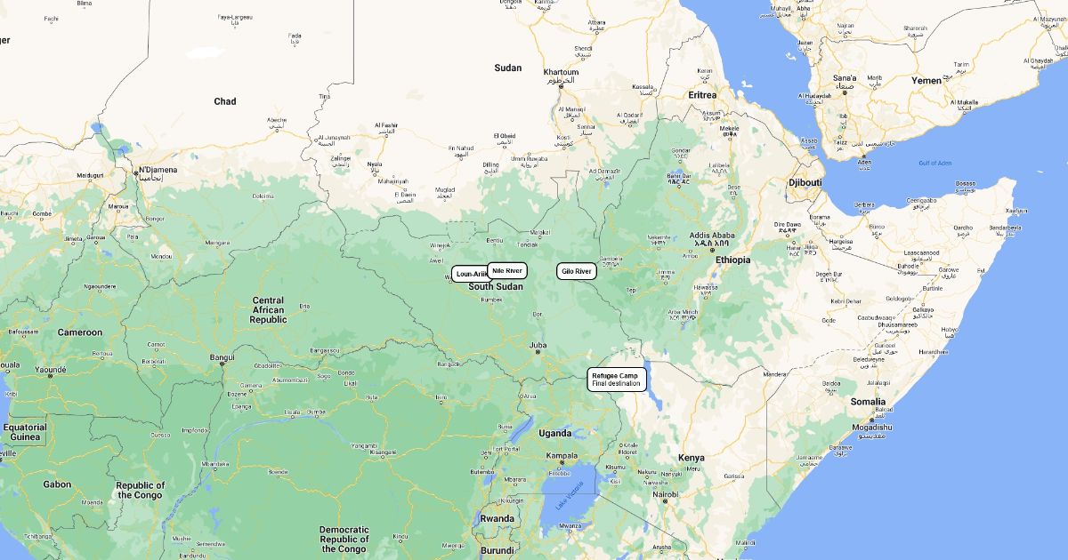 A map of 'A Long Walk to Water'