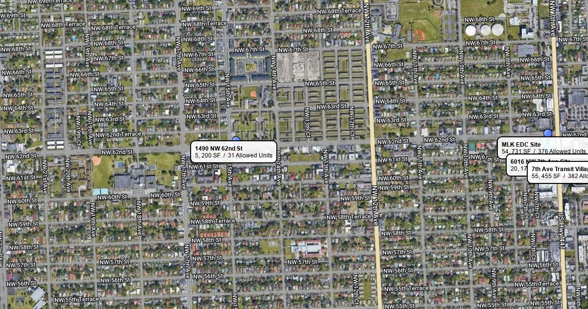 The four different sites and their square footage, acreage, density, and parking requirements can be found in the map.