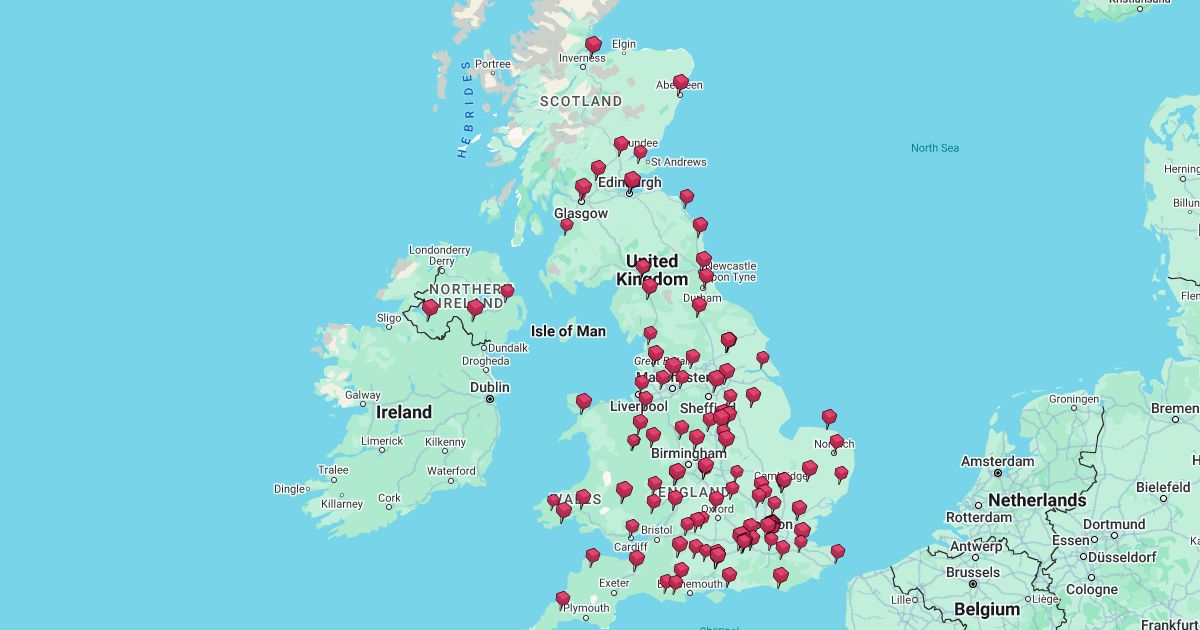A map to show the Army museums and collections in the AMOT network
