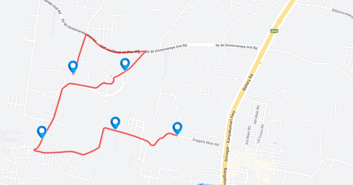 This map lays the route for the charity marathon that will be conducted on sunday (12th march,2017)