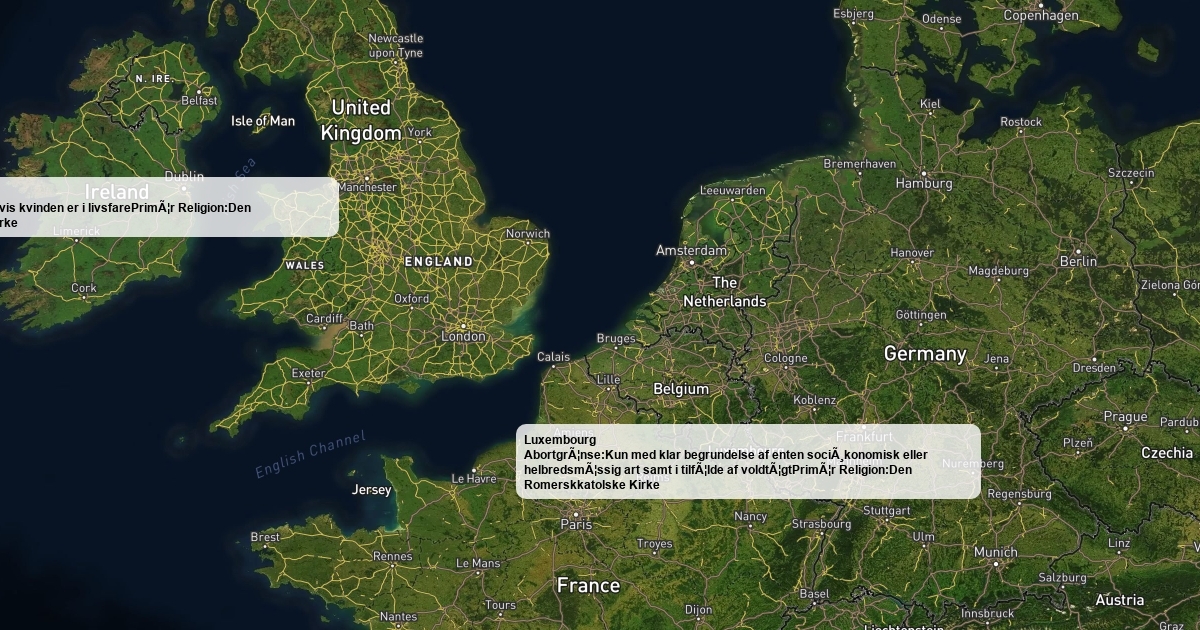 Et kort over 5 EU lande og deres abortlove.