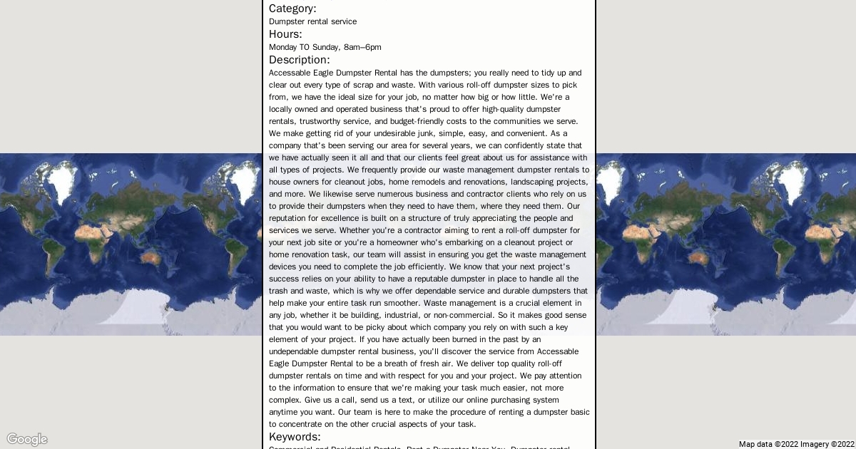 Accessable Eagle Dumpster Rental