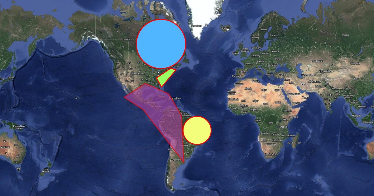 Territories of the countries Portugal, Spain, Britain, and France.