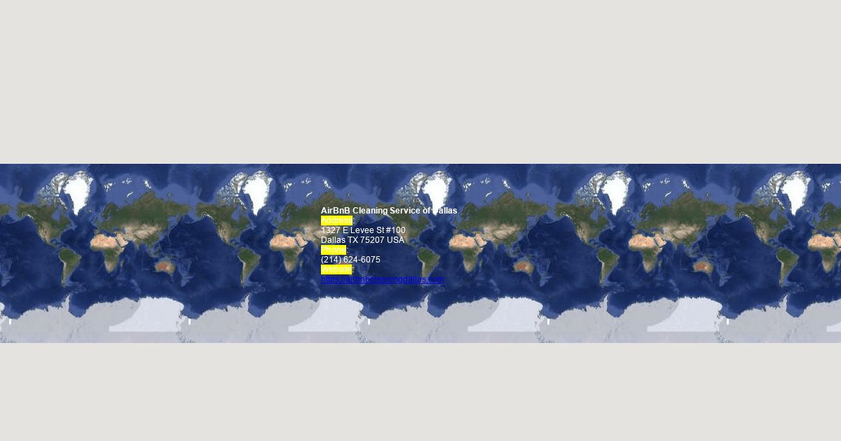 Address: 1327 E Levee St #100 Dallas TX 75207 USA Phone: (214) 624-6075 Website: https://airbnbcleaningdallas.com
