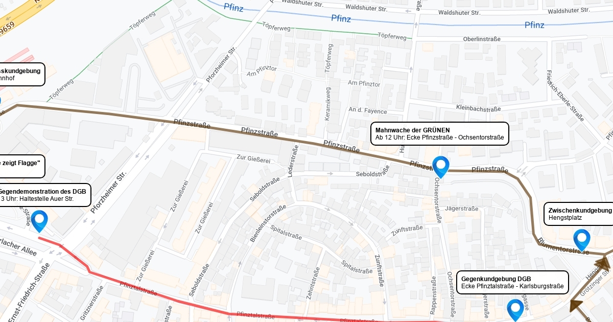 Karte für den geplanten Naziaufmarsch am 3. Juni 2017 in Karlsruhe Durlach