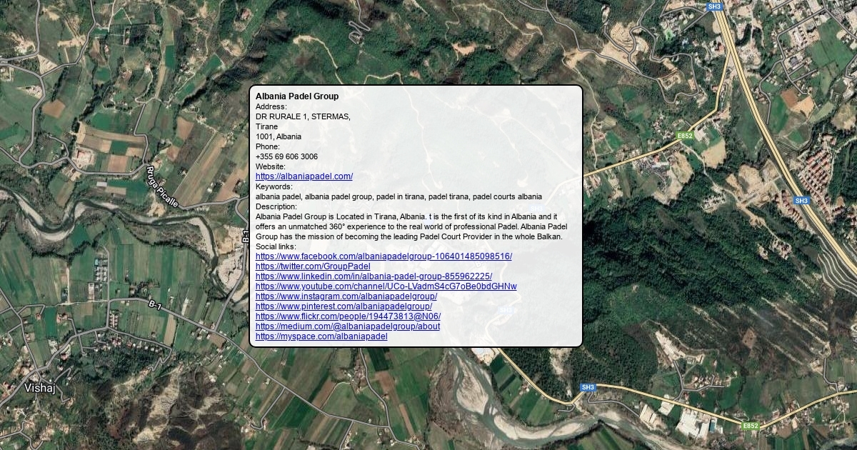 Address: DR RURALE 1, STERMAS, Tirane 1001, Albania Phone: +355 69 606 3006 Website: https://albaniapadel.com/ Keywords: albania padel, albania padel group, padel in tirana, padel tirana, padel courts albania Description: Albania Padel Group is Located in Tirana, Albania. t is the first of its kind in Albania and it offers an unmatched 360° experience to the real world of professional Padel. Albania Padel Group has the mission of becoming the leading Padel Court Provider in the whole Balkan.