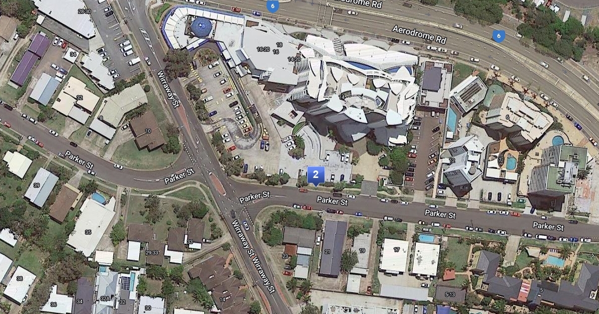 there are houses, buildings, roads, parks, fast food restaurant and a beach.
