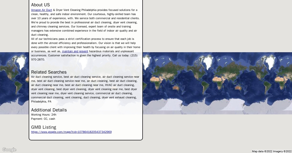 Amazon Air Duct & Dryer Vent Cleaning Philadelphia provides focused solutions for a clean, healthy, and safe indoor environment. Our courteous, highly-skilled team has over 10 years of experience.