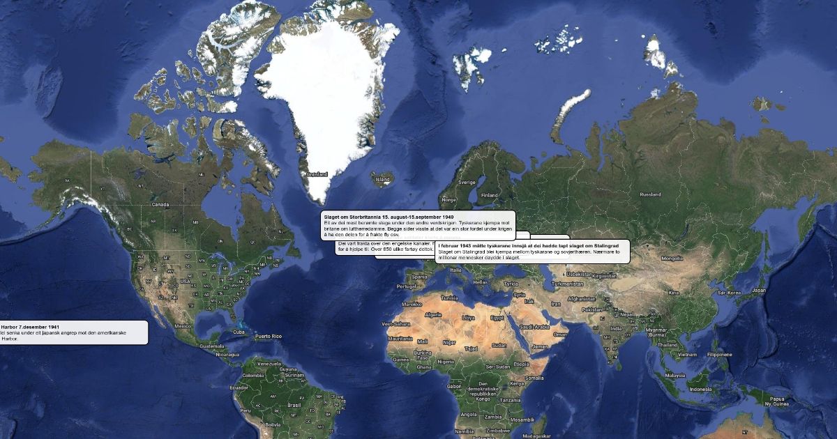 Viktige plasser og hendelser under den andre verdskrigen.