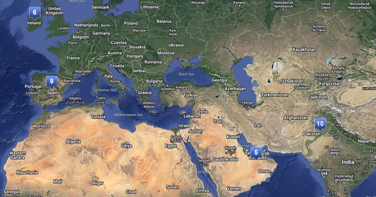 Map of items and countires