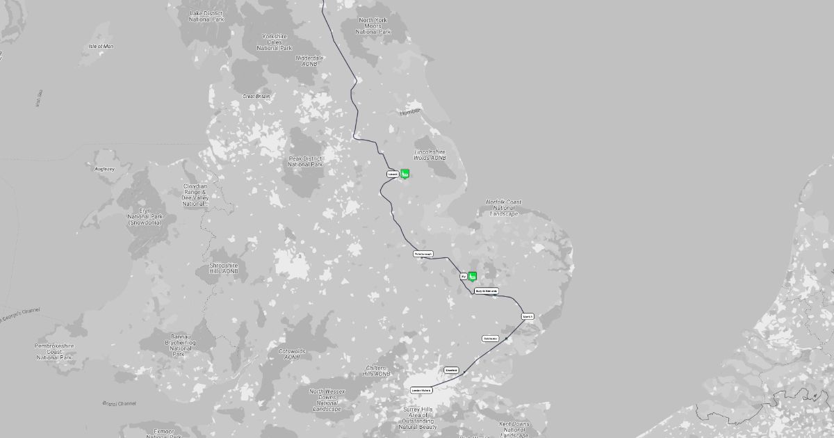 route map for Angel of the North train