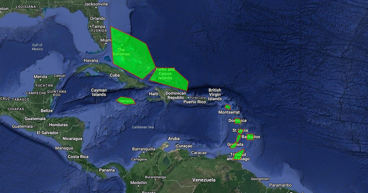 English speaking countries of the Caribbean are outlined
