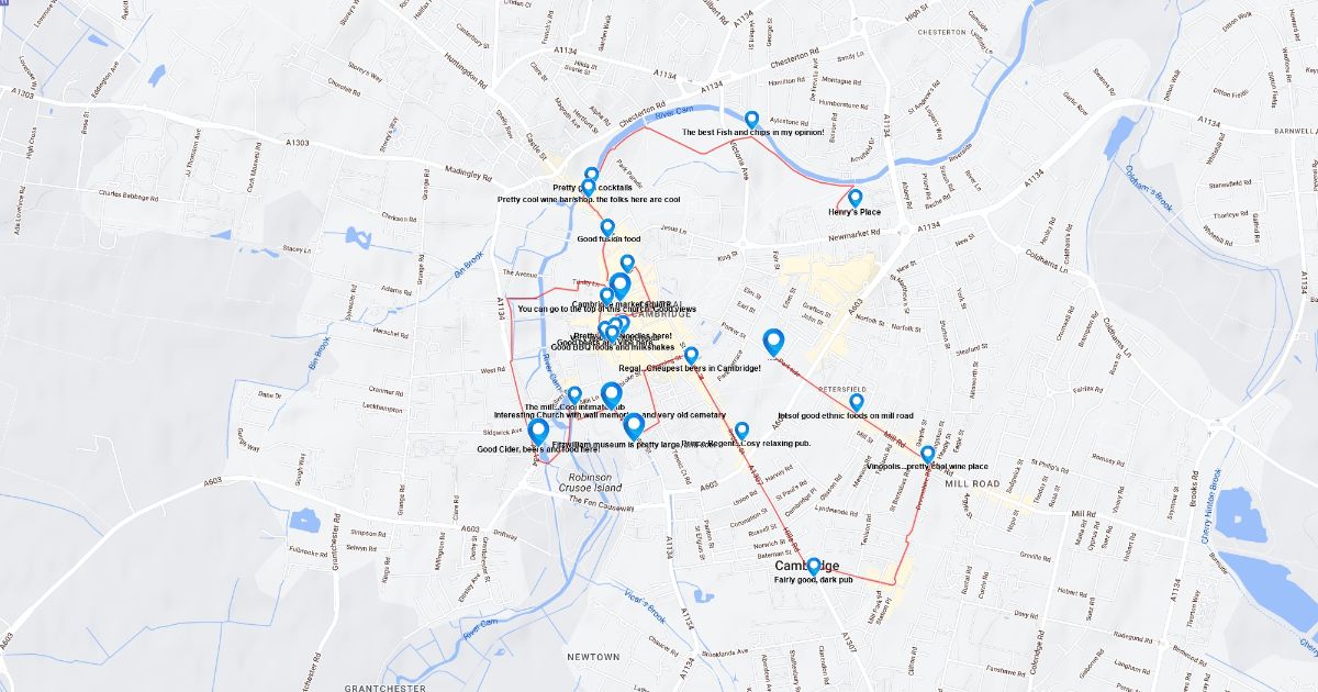 A walking map of the historical center of Cambridge
