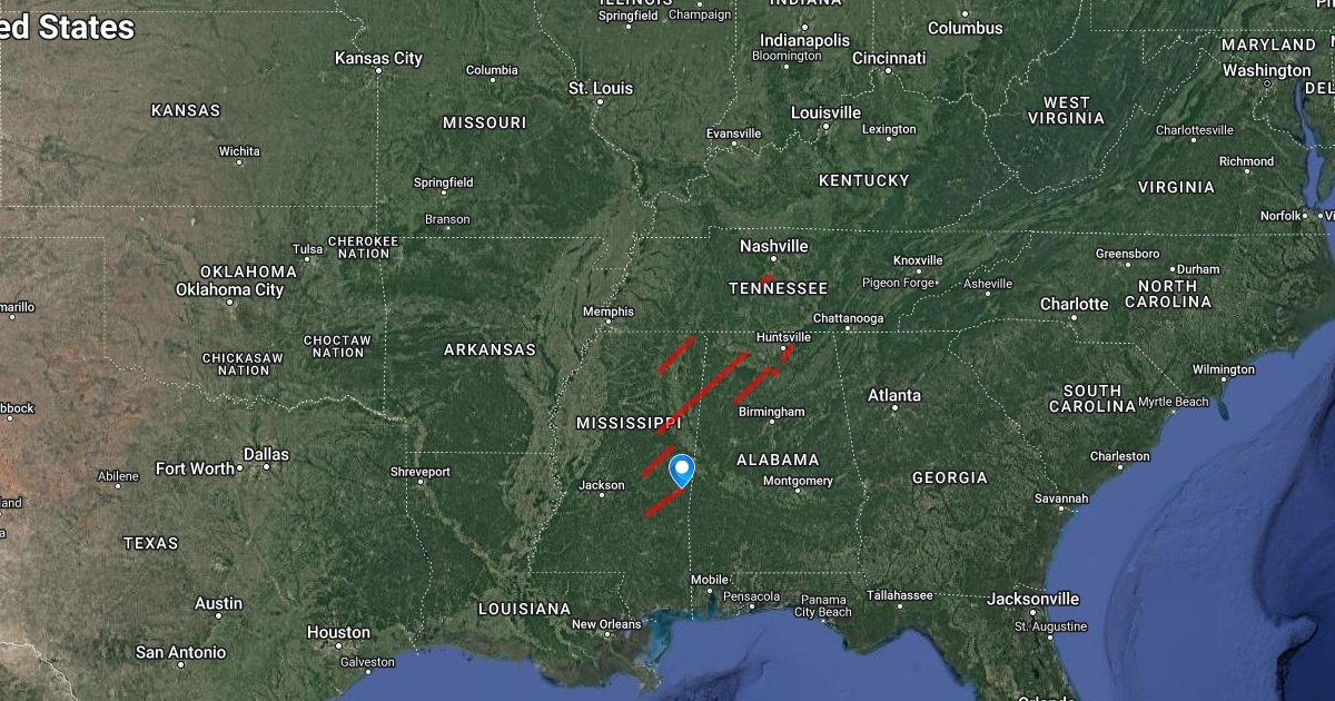 Approx paths of April 20, 1920 Tornado Outbreak