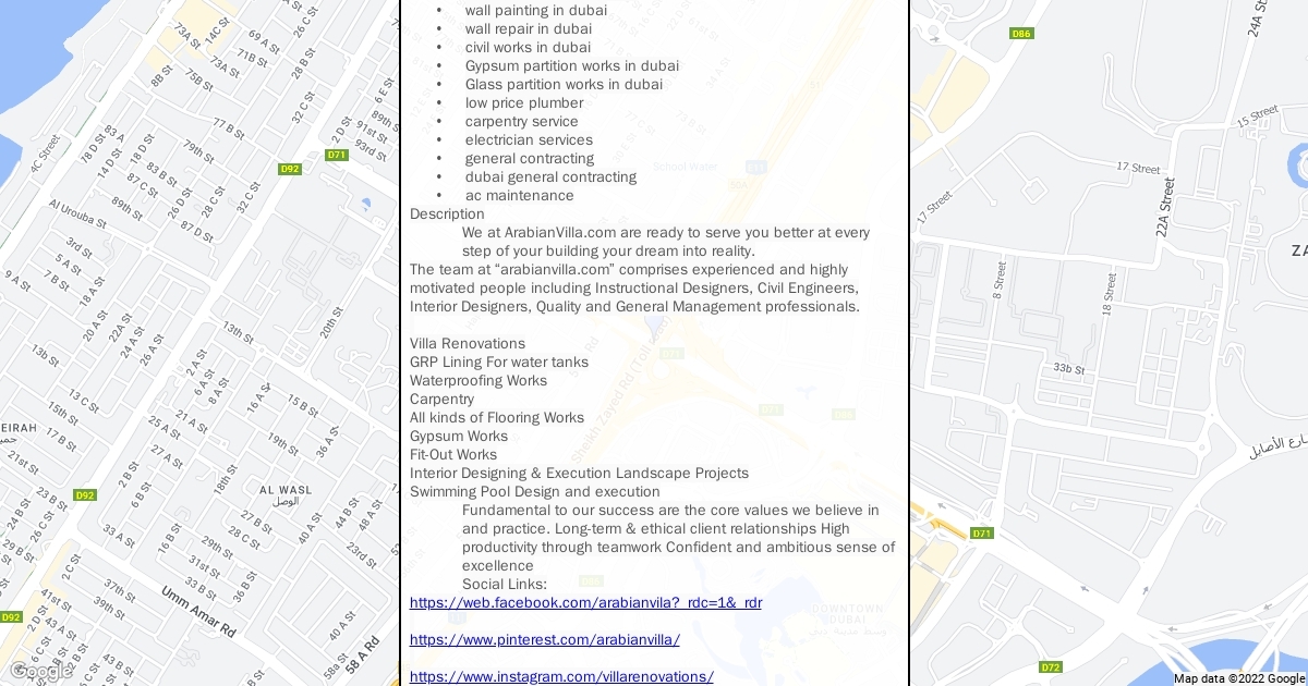 We at ArabianVilla.com are ready to serve you better at every step of your building your dream into reality. The team at “arabianvilla.com” comprises experienced and highly motivated people including Instructional Designers, Civil Engineers, Interior Designers, Quality and General Management professionals. Villa Renovations GRP Lining For water tanks Waterproofing Works Carpentry All kinds of Flooring Works Gypsum Works Fit-Out Works Interior Designing & Execution Landscape Projects Swimming Pool Design and execution Fundamental to our success are the core values we believe in and practice. Long-term & ethical client relationships High productivity through teamwork Confident and ambitious sense of excellence.