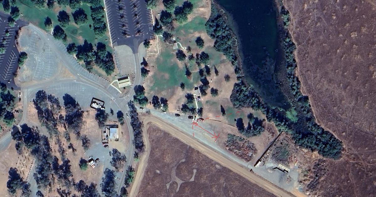Arrow is range and shooting direction. Dashed lines are safety zone