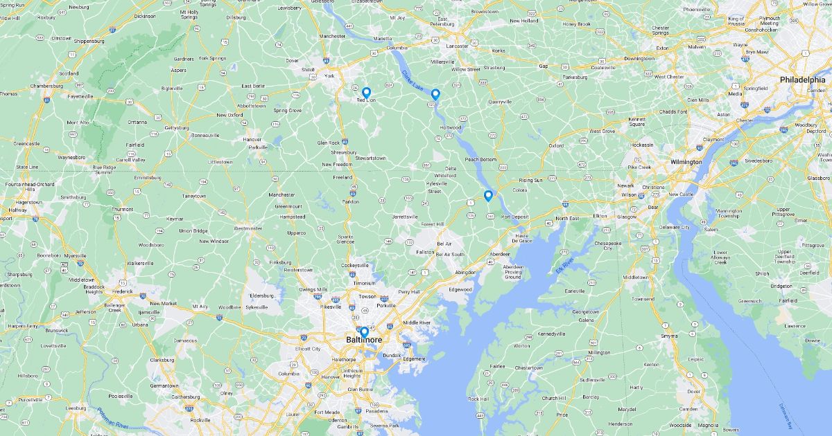 Body found Weise Island,PA - cat incident Red Lion,PA - Pipe leak/LFoA headquarters Baltimore,MD - Institution Darlington,MD