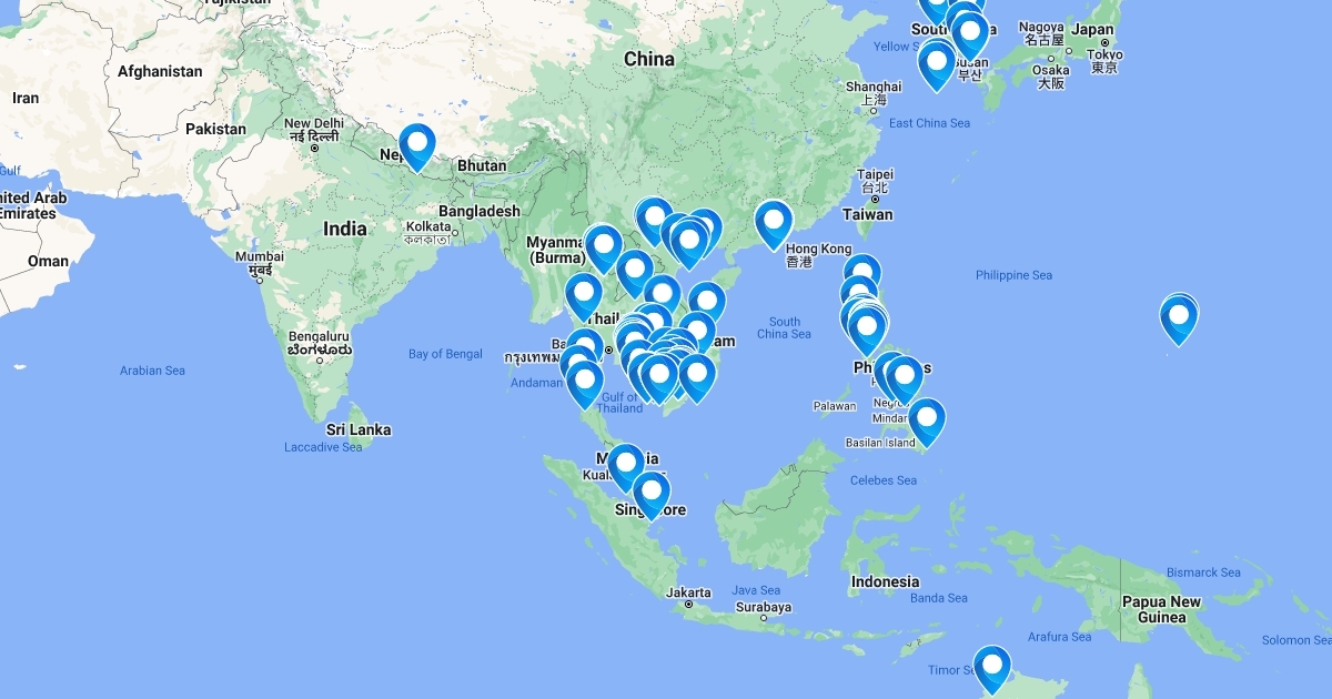 map of casinos throughout Asia Pacific
