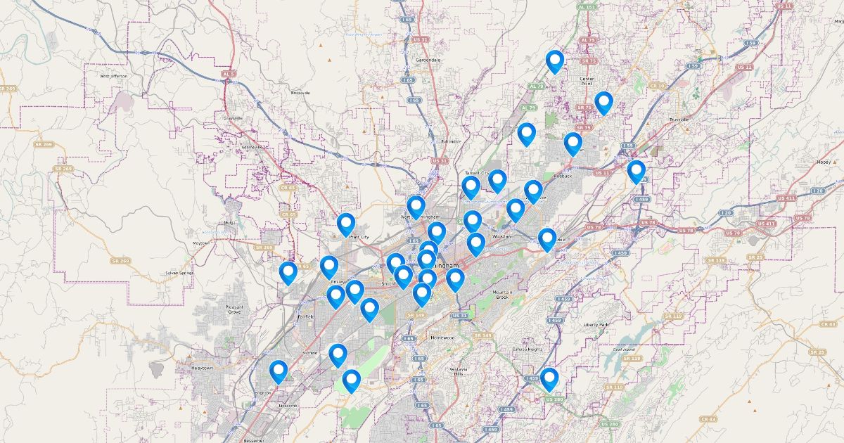 a map of all of Birmingham Fire Departments Stations