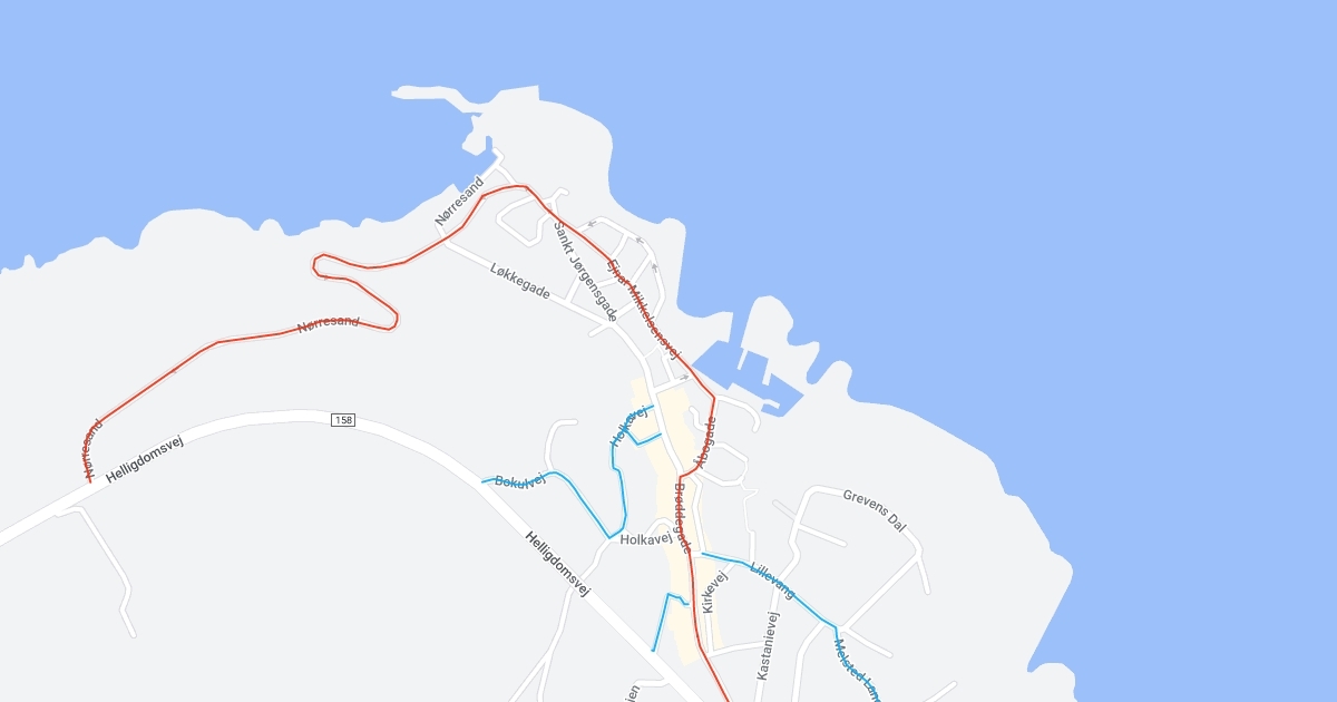 Rød rute: spærret Blå ruter: til og fra Gudhjem