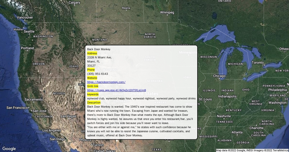 Back Door Monkey is wanted. The 1940’s war inspired restaurant has come to show Miami who’s now running the town. Escaping from Japan and wanted for treason, there’s more to Back Door Monkey than what meets the eye. Although Back Door Monkey is highly wanted, he assures us that once you enter his restaurant/bar, you’ll switch forces and join his side because you’ll never want to leave.