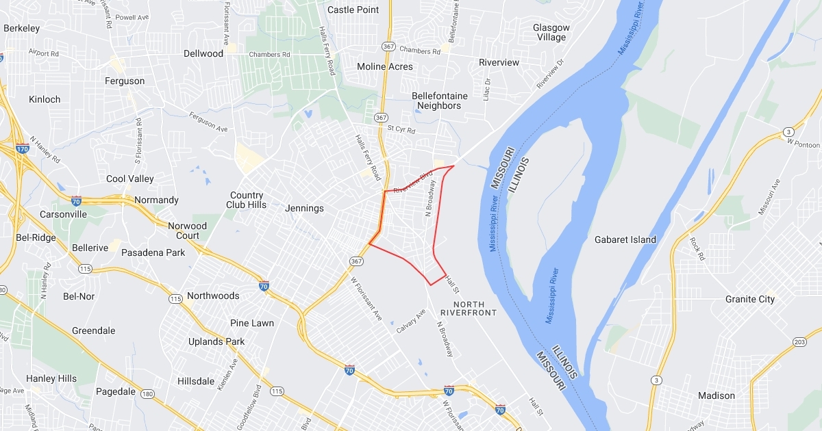The boundaries of Baden community in St. Louis, MO.