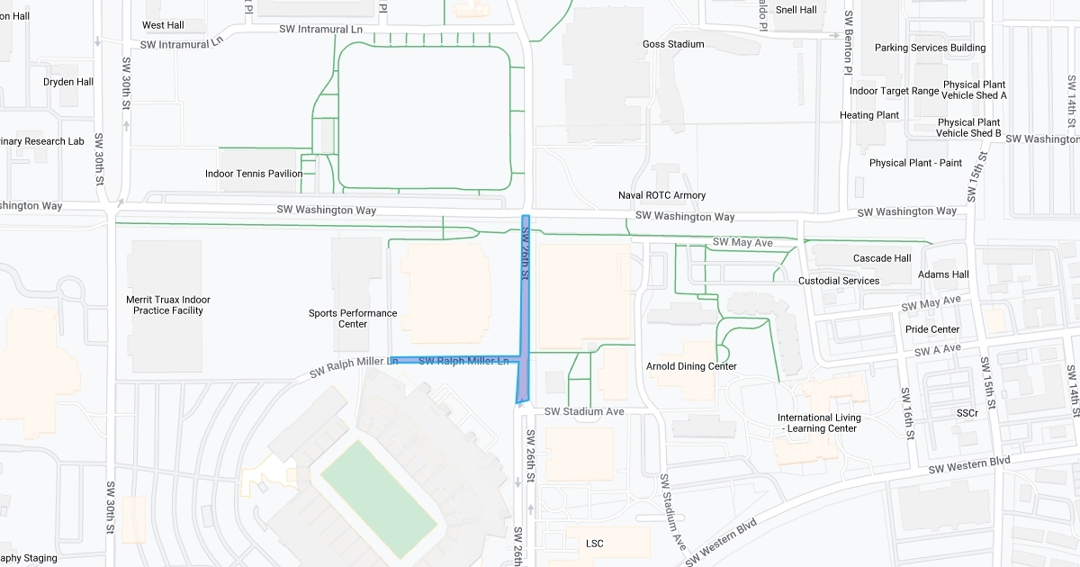 shut down of 26th street and Ralph Miller from Washington Way to Alumni Center