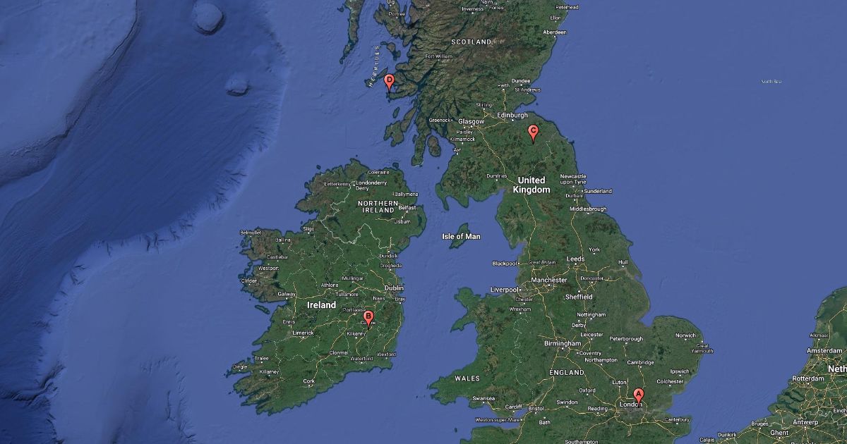 Map of ghost appearances reported by Bede.