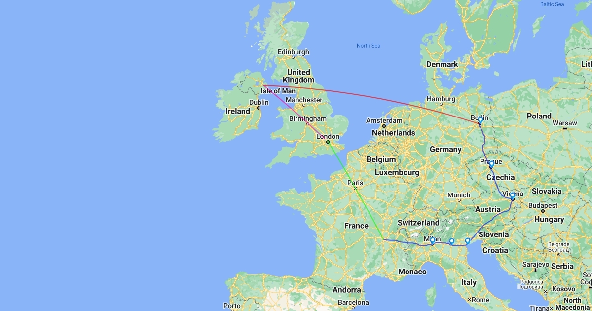 Berlin/Prague/Vienna/Venice/Verona/Milan/Lyon/London/Belfast